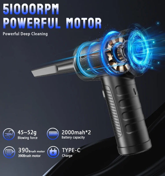Compressed Air Duster - 100000RPM Cordless Air Blower for Keyboard Cleaner,Air Duster Electric with LED Light, Rechargeable Air Dusters 3 Adjustable Speeds Car Dusters